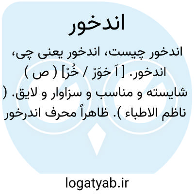 اندخور. [ اَ خوَرْ / خُرْ] ( ص ) شایسته و مناسب و سزاوار و لایق. ( ناظم الاطباء ). ظاهراً محرف اندرخور است. رجوع به اندرخور شود.