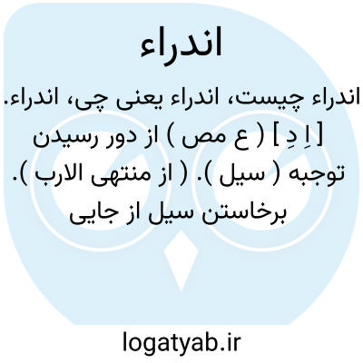 اندراء. [ اِ دِ ] ( ع مص ) از دور رسیدن توجبه ( سیل ). ( از منتهی الارب ). برخاستن سیل از جایی نامعلوم. ( از اقرب الموارد ). || پریشان و پراکنده شدن. ( منتهی الارب ) ( آنندراج ). انتشار. ( ازاقرب الموارد ). اندراءالحریق؛ پراکنده شد. ( ناظم الاطباء ). || دور رفتن سیل. ( منتهی الارب ) ( ازناظم الاطباء ) ( آنندراج ). یقال اندراءالسیل. ( ناظم الاطباء ). || ناگاه آمدن بر کسی. ( تاج المصادر بیهقی نسخه خطی ورق 232 ب ) ( از اقرب الموارد ).