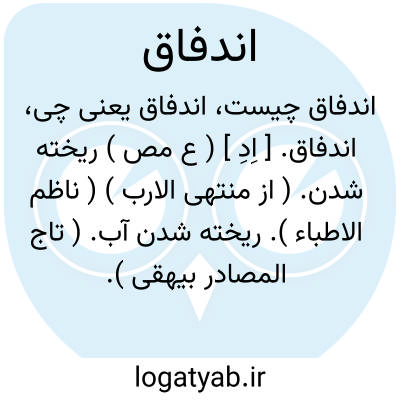 اندفاق. [ اِدِ ] ( ع مص ) ریخته شدن. ( از منتهی الارب ) ( ناظم الاطباء ). ریخته شدن آب. ( تاج المصادر بیهقی ). ریخته شدن و برجستن آب و مانند آن. ( آنندراج ). انصباب. ( از اقرب الموارد ). یقال: اندفق اندفاقاً. ( ناظم الاطباء ).