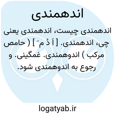 اندهمندی. [ اَ دُ م َ ] ( حامص مرکب ) اندوهمندی. غمگینی. و رجوع به اندوهمندی شود.