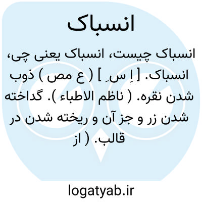 انسباک. [ اِ س ِ ] ( ع مص ) ذوب شدن نقره. ( ناظم الاطباء ). گداخته شدن زر و جز آن و ریخته شدن در قالب. ( از اقرب الموارد ). گداخته شدن زر و نقره و دیگر فلزات. ( غیاث اللغات ) ( آنندراج ): و اوقدوا ناراً فانسبکت الفضة. ( اخبار الصین و الهند ص 5 از یادداشت مؤلف ).