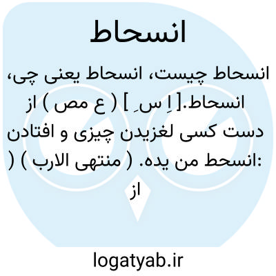 انسحاط.[ اِ س ِ ] ( ع مص ) از دست کسی لغزیدن چیزی و افتادن:انسحط من یده. ( منتهی الارب ) ( از ناظم الاطباء ) ( از اقرب الموارد ). چیزی لغزیده افتادن چنانکه از دست. ( یادداشت مؤلف ). || از بالا به چیزی آویخته سپس از دست آن را گذاشته فرودآمدن، یقال انسحط عن النخلة؛ اذا تدلی عنها حتی ینزل لایمسکها بیده. ( منتهی الارب ) ( ناظم الاطباء ) ( از اقرب الموارد ). دست از جایی چنگ زده رها کردن و به زیر آمدن. ( یادداشت مؤلف ).