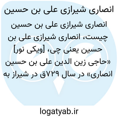 [ویکی نور] «حاجی زین الدین علی بن حسین انصاری» در سال 729ق در شیراز به دنیا آمد. پدرش حسین انصاری نیز از اطبای بنام بوده که از اصفهان به شیراز آمده و فرزندش علی در این شهر متولد شده است.