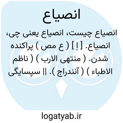 انصیاع. [ اِ ] ( ع مص ) پراکنده شدن. ( منتهی الارب ) ( ناظم الاطباء ) ( آنندراج ). || سپسایگی برگشتن و شتاب گذشتن. ( منتهی الارب ) ( ناظم الاطباء ) ( آنندراج ) ( از اقرب الموارد ). واگردیدن. سپسایگی رفتن. ( یادداشت مؤلف ).