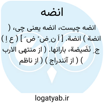 ( انضة ) انضة. [ اَ ن ِض ْ ض َ ] ( ع اِ ) ج ِ نَضَیضة، بارانها. ( از منتهی الارب ) ( از آنندراج ) ( از ناظم الاطباء ) ( از اقرب الموارد ). و رجوع به نضیضة شود.