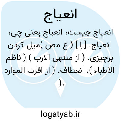 انعیاج. [ اِ ] ( ع مص )میل کردن برچیزی. ( از منتهی الارب ) ( ناظم الاطباء ). انعطاف. ( از اقرب الموارد ). بر در آمدن و میل کردن. ( آنندراج ). خم شدن و میل کردن. ( از یادداشت مؤلف ).