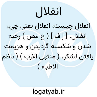 انفلال. [ اِ ف ِ] ( ع مص ) رخنه شدن و شکسته گردیدن و هزیمت یافتن لشکر. ( منتهی الارب ) ( ناظم الاطباء ) ( آنندراج ). شکسته شدن. ( تاج المصادر بیهقی ). تثلم. ( از اقرب الموارد ).