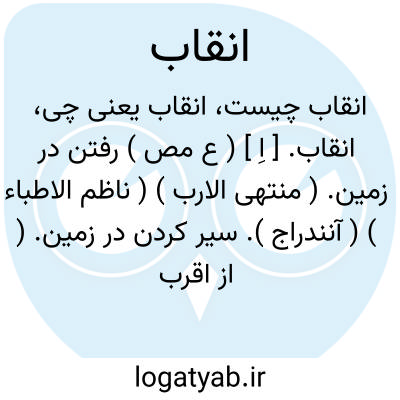 انقاب. [ اَ ] ( ع اِ ) ج ِ نَقب. ( منتهی الارب ) ( از اقرب الموارد ). سوراخها و سرنگها که در زمین کنند. ( غیاث اللغات ). || گوشها ( واحد ندارد ). ( از اقرب الموارد ). || ج ِ نِقاب. روبندها. ( از غیاث اللغات ). جمع نقاب در اقرب الموارد نقب است. و رجوع به مفردهای کلمه شود.
