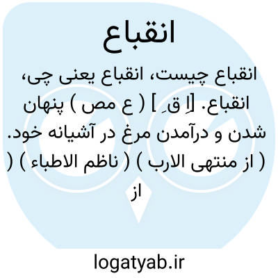انقباع. [اِ ق ِ ] ( ع مص ) پنهان شدن و درآمدن مرغ در آشیانه خود. ( از منتهی الارب ) ( ناظم الاطباء ) ( از آنندراج ). داخل شدن پرنده در آشیانه خود. ( از اقرب الموارد ).