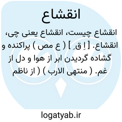 انقشاع. [ اِ ق ِ ] ( ع مص ) پراکنده و گشاده گردیدن ابر از هوا و دل از غم. ( منتهی الارب ) ( از ناظم الاطباء ) ( آنندراج ). از بین رفتن اندوه از دل و بلا از شهرها. ( از اقرب الموارد ). واشدن میغ. ( تاج المصادر بیهقی ). باز شدن ابر. باز شدن هوا. صافی شدن هوا. ازمهلال. امزهلال. ( یادداشت مؤلف ).