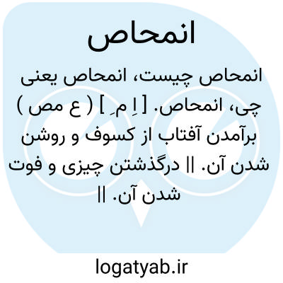 انمحاص. [ اِ م ِ ] ( ع مص ) برآمدن آفتاب از کسوف و روشن شدن آن. || درگذشتن چیزی و فوت شدن آن. || فرونشستن آماس. ( از منتهی الارب ) ( ناظم الاطباء ) ( آنندراج ).