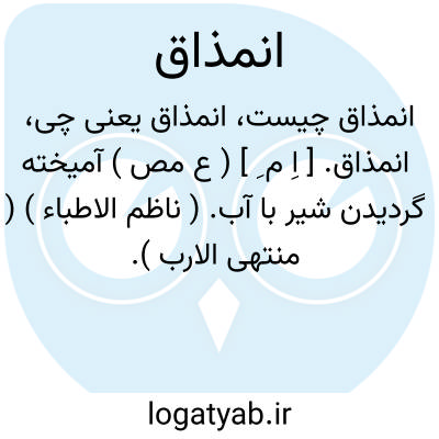 انمذاق. [ اِ م ِ ] ( ع مص ) آمیخته گردیدن شیر با آب. ( ناظم الاطباء ) ( منتهی الارب ).