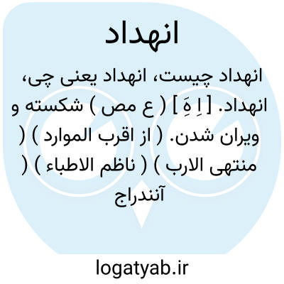 انهداد. [ اِ هَِ ] ( ع مص ) شکسته و ویران شدن. ( از اقرب الموارد ) ( منتهی الارب ) ( ناظم الاطباء ) ( آنندراج ).شکسته شدن. ( تاج المصادر بیهقی ) ( المصادر زوزنی ).