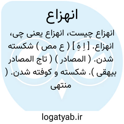 انهزاع. [ اِ هَِ ] ( ع مص ) شکسته شدن. ( المصادر ) ( تاج المصادر بیهقی ). شکسته و کوفته شدن. ( منتهی الارب ) ( ناظم الاطباء ) ( آنندراج ).