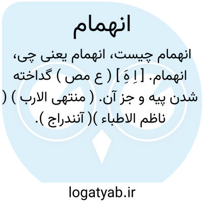 انهمام. [ اِ هَِ ] ( ع مص ) گداخته شدن پیه و جز آن. ( منتهی الارب ) ( ناظم الاطباء )( آنندراج ). گداخته شدن. ( تاج المصادر ). || پیر شدن. ( منتهی الارب ) ( ناظم الاطباء ) ( آنندراج ).