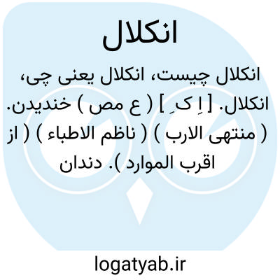 لغت نامه دهخدا انکلال. [ اِ ک ِ ] ( ع مص ) خندیدن. ( منتهی الارب ) ( ناظم الاطباء ) ( از اقرب الموارد ). دندان نمودن و خندیدن. ( آنندراج ). گماریدن. ( تاج المصادر بیهقی ). بگماریدن. ( مصادر زوزنی ). || کند شدن شمشیر. ( منتهی الارب ) ( ناظم الاطباء ) ( آنندراج ) ( از اقرب الموارد ). کند شدن. ( یادداشت مؤلف ). || نرم درخشیدن و بروشنایی برق نمودارشدن تاریکی ابر. ( از منتهی الارب ) ( ناظم الاطباء ) ( ازاقرب الموارد ). درخشیدن برق. ( تاج المصادر بیهقی ): انکل السحاب عن البرق. ( منتهی الارب ) ( ناظم الاطباء ).