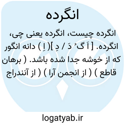 انگرده. [ اَ گ ُ دَ / دِ ]( اِ ) دانه انگور که از خوشه جدا شده باشد. ( برهان قاطع ) ( از انجمن آرا ) ( از آنندراج ) ( ناظم الاطباء ).