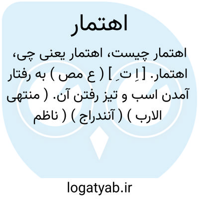 اهتمار. [ اِ ت ِ ] ( ع مص ) به رفتار آمدن اسب و تیز رفتن آن. ( منتهی الارب ) ( آنندراج ) ( ناظم الاطباء ). رفتن اسب. ( تاج المصادر بیهقی ).