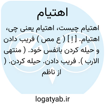 اهتیام. [ اِ ] ( ع مص ) فریب دادن و حیله کردن بانفس خود. ( منتهی الارب ). فریب دادن. حیله کردن. ( از ناظم الاطباء ). احتیال. ( یادداشت بخط مرحوم دهخدا ).
