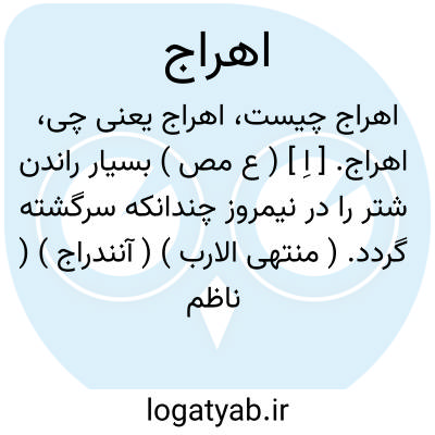 اهراج. [ اِ ] ( ع مص ) بسیار راندن شتر را در نیمروز چندانکه سرگشته گردد. ( منتهی الارب ) ( آنندراج ) ( ناظم الاطباء ).