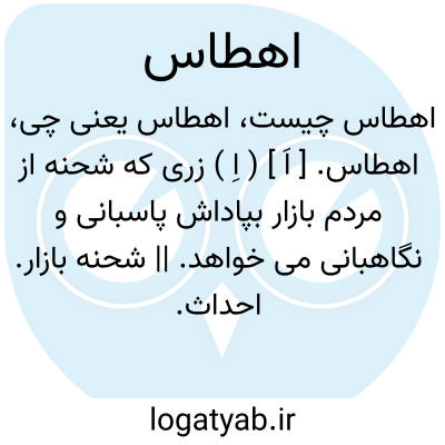 اهطاس. [ اَ ] ( اِ ) زری که شحنه از مردم بازار بپاداش پاسبانی و نگاهبانی می خواهد. || شحنه بازار. احداث. ( ناظم الاطباء ). و رجوع به احداث شود.
