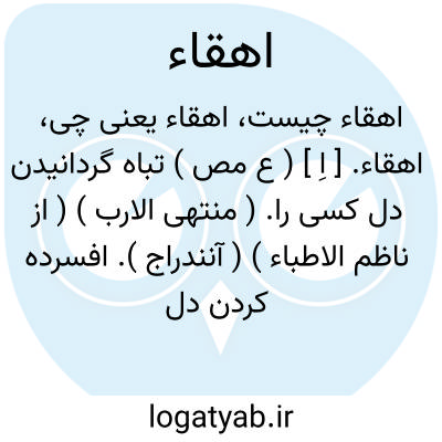 اهقاء. [ اِ ] ( ع مص ) تباه گردانیدن دل کسی را. ( منتهی الارب ) ( از ناظم الاطباء ) ( آنندراج ). افسرده کردن دل کسی. ( یادداشت بخط مرحوم دهخدا ).