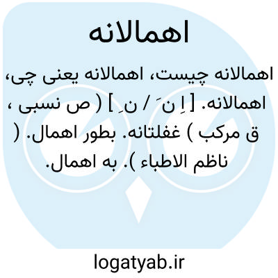 اهمالانه. [ اِ ن َ / ن ِ ] ( ص نسبی، ق مرکب ) غفلتانه. بطور اهمال. ( ناظم الاطباء ). به اهمال.