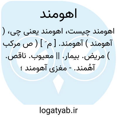 ( آهومند ) (مَ ) (ص مر. ) ۱ - مریض، بیمار. ۲ - معیوب، ناقص.