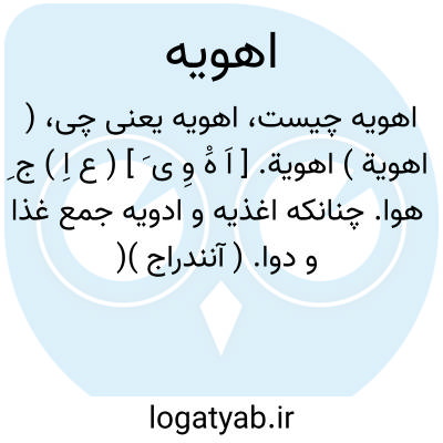 ( اهویة ) اهویة. [ اَ هَْ وِ ی َ ] ( ع اِ ) ج ِ هوا. چنانکه اغذیه و ادویه جمع غذا و دوا. ( آنندراج )( غیاث اللغات ) ( مهذب الاسماء ) ( از ناظم الاطباء ): بر یکدیگر حسد بردند و اهویه ٔمختلفه در میان ایشان پیدا شد. ( تاریخ قم ص 241 ). رجوع به هوا شود.