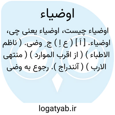 لغت نامه دهخدا اوضیاء. [ اَ ] ( ع اِ ) ج ِ وضی. ( ناظم الاطباء ) ( از اقرب الموارد ) ( منتهی الارب ) ( آنندراج ). رجوع به وضی شود.