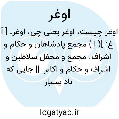 اوغر. [ اَ غ َ ]( اِ ) مجمع پادشاهان و حکام و اشراف. مجمع و محفل سلاطین و اشراف و حکام و اکابر. || جایی که باد بسیار میوزد. ( ناظم الاطباء ) ( آنندراج ) ( برهان ).
