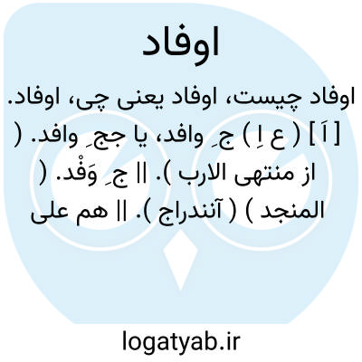 اوفاد. [ اَ ] ( ع اِ ) ج ِ وافد، یا جج ِ وافد. ( از منتهی الارب ). || ج ِ وَفْد. ( المنجد ) ( آنندراج ). || هم علی اوفاد؛ ای علی سفر. ( منتهی الارب ) ( ناظم الاطباء ) ( از آنندراج ).