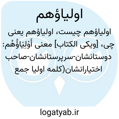 [ویکی الکتاب] معنی أَوْلِیَاؤُهُم: دوستانشان-سرپرستانشان-صاحب اختیارانشان(کلمه اولیا جمع کلمه ولی است، که از ماده ولایت است، و ولایت در اصل به معنای مالکیت تدبیر امر است، مثلا ولی صغیر یا مجنون یا سفیه، کسی است که مالک تدبیر امور و اموال آنان باشد، که خود آنان مالک اموال خویشند،...
