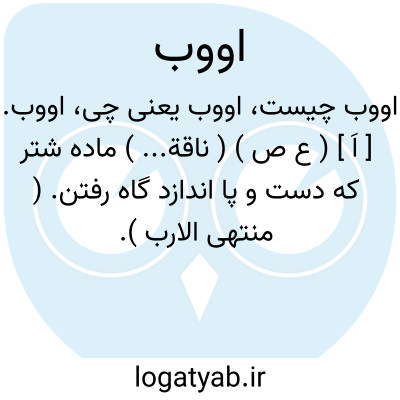 اووب. [ اَ ] ( ع ص ) ( ناقة... ) ماده شتر که دست و پا اندازد گاه رفتن. ( منتهی الارب ).