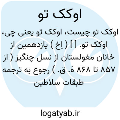 اوکک تو. [ ] ( اِخ ) یازدهمین از خانان مغولستان از نسل چنگیز ( از 857 تا 868 هَ. ق. ) رجوع به ترجمه طبقات سلاطین اسلام لین پول شود.