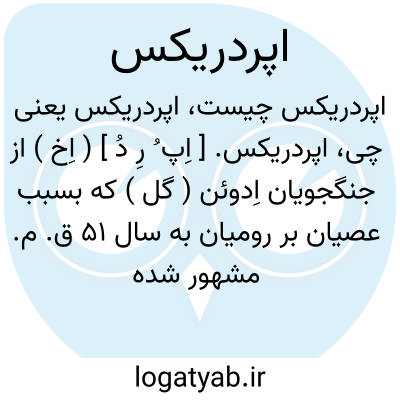 لغت نامه دهخدا اپردریکس. [ اِپ ُ رِ دُ ] ( اِخ ) از جنگجویان اِدوئن ( گل ) که بسبب عصیان بر رومیان به سال 51 ق. م. مشهور شده است.