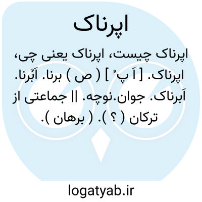 لغت نامه دهخدا اپرناک. [ اَ پ ُ ] ( ص ) برنا. اَبُرنا. اَبرناک. جوان.نوچه. || جماعتی از ترکان ( ؟ ). ( برهان ).