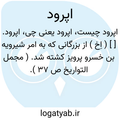 اپرود. [ ] ( اِخ ) از بزرگانی که به امر شیرویه بن خسرو پرویز کشته شد. ( مجمل التواریخ ص 37 ).