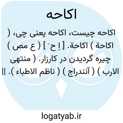 ( اکاحة ) اکاحة. [ اِ ح َ ] ( ع مص ) چیره گردیدن در کارزار. ( منتهی الارب ) ( آنندراج ) ( ناظم الاطباء ). || دادن عطا. دهش، گویند: ما اکاحه؛ ای ما اعطاء. ( منتهی الارب ) ( ناظم الاطباء ). دادن. ( آنندراج ).