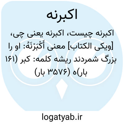 دانشنامه اسلامی [ویکی الکتاب] معنی أَکْبَرْنَهُ: او را بزرگ شمردندریشه کلمه: کبر (۱۶۱ بار)ه (۳۵۷۶ بار)