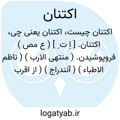 - اکتنان ساختن؛ پوشیده داشتن. فروپوشیدن: اهل تمییز در هواجز این حرقت و ظهایر این مشقت در ظل ظلیل او اکتنان ساخته اند. ( از ترجمه تاریخ یمینی ص 12 ).