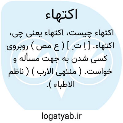 لغت نامه دهخدا اکتهاء. [ اِ ت ِ ] ( ع مص ) روبروی کسی شدن به جهت مسأله و خواست. ( منتهی الارب ) ( ناظم الاطباء ). درباره مسأله ای با کسی سخن گفتن. ( از اقرب الموارد ).