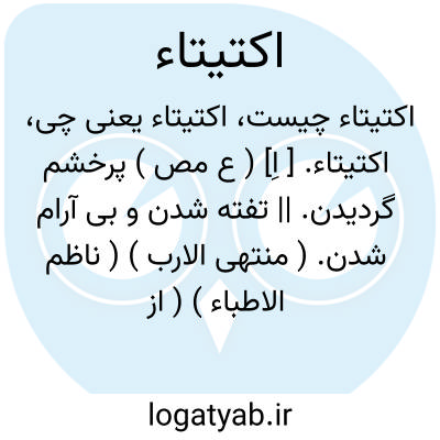 اکتیتاء. [ اِ] ( ع مص ) پرخشم گردیدن. || تفته شدن و بی آرام شدن. ( منتهی الارب ) ( ناظم الاطباء ) ( از اقرب الموارد ). || نیک ستودن خود را. ( منتهی الارب ) ( ناظم الاطباء ). مبالغه کردن در وصف خود بدون داشتن عمل. ( از اقرب الموارد ).