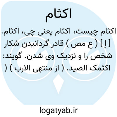 اکثام. [ اِ ] ( ع مص ) قادر گردانیدن شکار شخص را و نزدیک وی شدن. گویند: اکثمک الصید. ( از منتهی الارب ) ( ناظم الاطباء ) ( آنندراج ). نزدیک شدن شکار به صیاد. ( یادداشت مؤلف ). ( از اقرب الموارد ). || پر کردن خیک را. ( منتهی الارب ) ( ناظم الاطباء ) ( آنندراج ) ( از اقرب الموارد ). پرکردن مشک. ( دهار ). || پنهان گردیدن در خانه خود. ( منتهی الارب ) ( ناظم الاطباء ) ( از آنندراج ) ( از اقرب الموارد ). پنهان گردیدن. ( یادداشت مؤلف ).