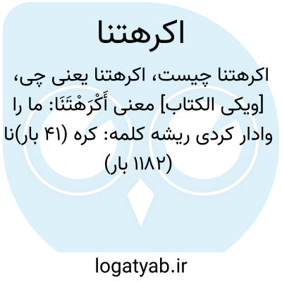 دانشنامه اسلامی [ویکی الکتاب] معنی أَکْرَهْتَنَا: ما را وادار کردیریشه کلمه: کره (۴۱ بار)نا (۱۱۸۲ بار)