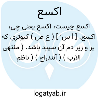 اکسع. [ اَ س َ ] ( ع ص ) کبوتری که پر و زیر دم آن سپید باشد. ( منتهی الارب ) ( آنندراج ) ( ناظم الاطباء ) ( از اقرب الموارد ). || اسبانی که در دو طرف پای آنها سپیدی باشد. ( از اقرب الموارد ).