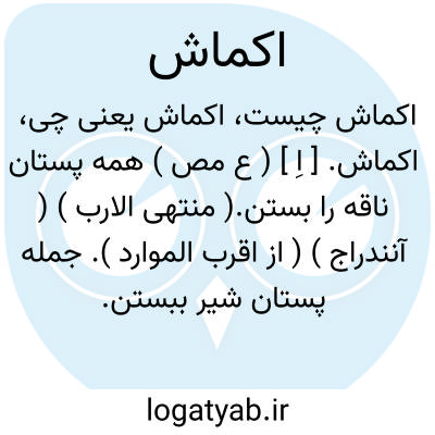 اکماش. [ اِ ] ( ع مص ) همه پستان ناقه را بستن.( منتهی الارب ) ( آنندراج ) ( از اقرب الموارد ). جمله پستان شیر ببستن. ( دهار ) ( تاج المصادر بیهقی ). || شتافتن در سیر و جز آن. ( از اقرب الموارد ).
