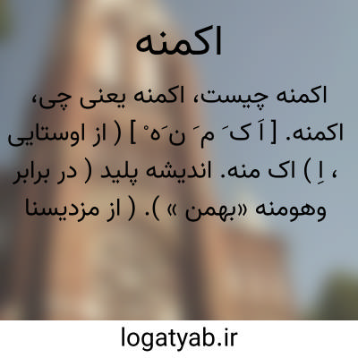 اکمنه. [ اَ ک َ م َ ن َه ْ ] ( اِخ ) به عقیده زرتشتیان یکی از دستیاران و عمال شش گانه اهریمن که بدیها را بوسیله آنان در دنیا منتشر می سازد و آن مظهر اندیشه های پست و شرارت و نفاق است. ( از مزدیسنا و ادب پارسی ص 63 ). پدیدآورده اهریمن و رقیب بهمن یا منش نیک است. ( از فرهنگ ایران باستان ص 74 ).
