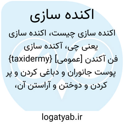 {taxidermy} [عمومی] فن آکندن پوست جانوران و دباغی کردن و پر کردن و دوختن و آراستن آن، به نحوی که جانور طبیعی و زنده جلوه کند