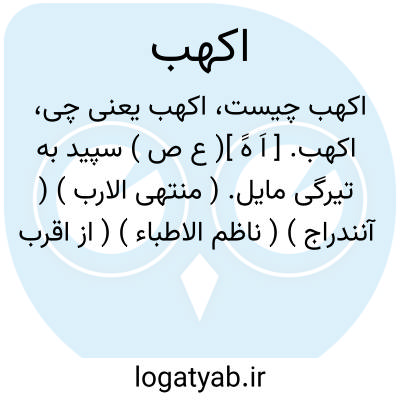اکهب. [ اَ هََ ]( ع ص ) سپید به تیرگی مایل. ( منتهی الارب ) ( آنندراج ) ( ناظم الاطباء ) ( از اقرب الموارد ). از رنگهای اسبان. ( از صبح الاعشی ج 2 ص 18 ). سفیدی تیره رنگ. ( مهذب الاسماء ). || سیاه. ( منتهی الارب ) ( ناظم الاطباء ) ( آنندراج ): چون جمشید خورشید در تتق آل عباس محتجب شد مرکب اکهب شب روی به مرو آورد. ( ترجمه تاریخ یمینی ص 180 ). || تیره مایل به سیاهی. ج، کُهب. ( منتهی الارب ) ( آنندراج ) ( ناظم الاطباء ). تیره رنگ. ( تاج المصادر بیهقی ) ( از المصادر زوزنی ).